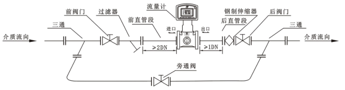 2、流量計安裝前,特別是新管道安裝或維修管道時,應(yīng)先清洗管道,清除所有的爐渣、鐵銹等管道雜物。