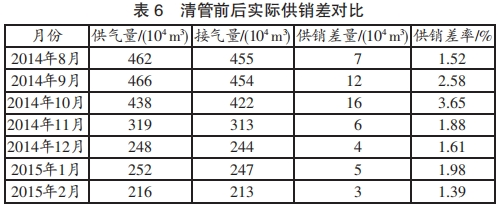 A子站的渦輪流量計距離壓縮站(由往復(fù)式壓縮機(jī)加壓)不到7公里,該壓縮站非常靠近上游,并且該子站的技術(shù)布局緊湊。根據(jù)現(xiàn)場測量,流量計的上游直管段的長度約為DN6(DN是渦輪流量計的口徑,mm),下游直管段的長度約為4DN。此外,沿7公里管道的崎terrain地形,加上大量的煤層氣(CBM)大量水,很容易在低洼地區(qū)形成液體積聚,并且液體積聚還會引起脈動流。 2014年8月至2014年10月,當(dāng)下游公司發(fā)現(xiàn)積極的供銷缺口持續(xù)增加時,它對變電站A和變電站B的渦輪流量計進(jìn)行了校準(zhǔn),但校準(zhǔn)結(jié)果全部合格。隨后,下游公司于2014年11月5日至7日對A到B輸電站的管道進(jìn)行了清管作業(yè),共清除了23噸污水中的雜質(zhì)。清管完成后,正供與銷之間的差異顯著減小。表6顯示了清管前后供求之間的實際差異。