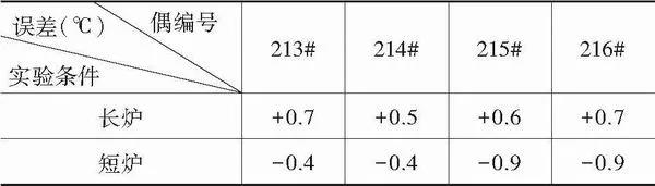 在我們實(shí)驗(yàn)室的6cm熱電偶試驗(yàn)爐(深度3cm)中升溫至6℃,然后隨爐冷卻至室溫。然后將冷端放入恒溫器中,分別在6cm熱電偶校準(zhǔn)爐(長爐)和4cm熱電偶校準(zhǔn)爐(短爐)中測量3℃的指示誤差。結(jié)果如表4所示。