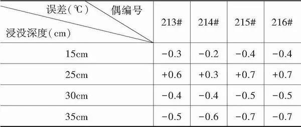 將熱電偶浸入3℃恒溫油槽中不同深度,實(shí)驗(yàn)結(jié)果如表5所示。